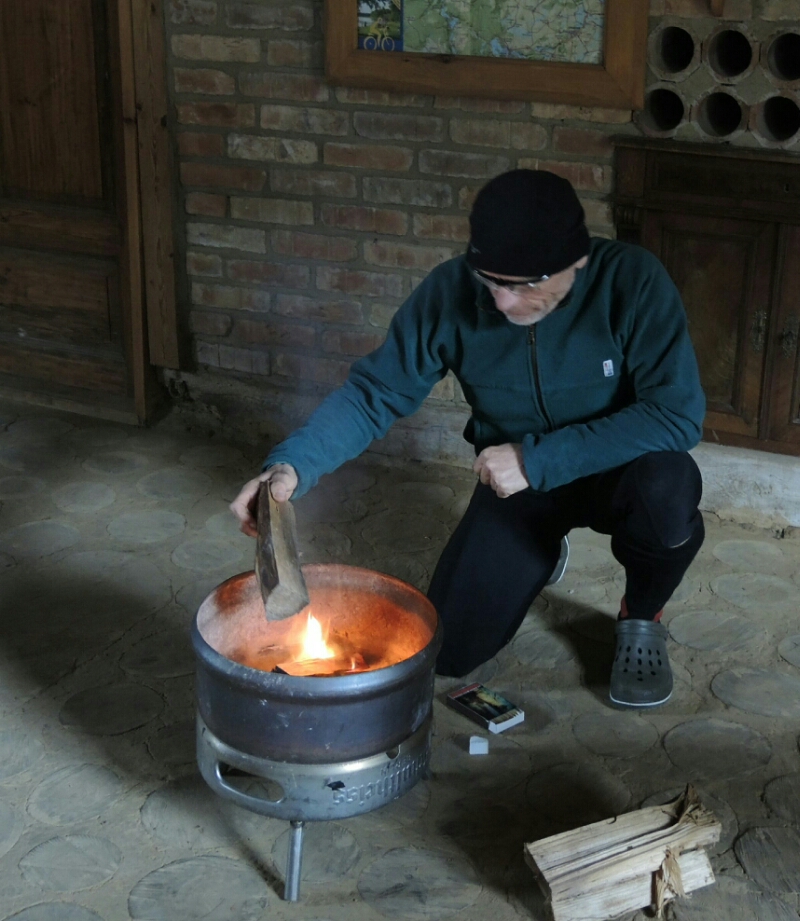 Ein wärmendes Feuer habe ich uns dann im umfunktionierten Schultheiss – Bierfass – gemacht.