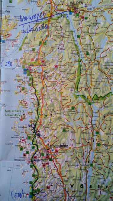 Dabei rausgekommen ist eine um 10 km kürzere und sehr attraktive Strecke entlang der Küstenlinie bis kurz vor die norwegische Grenze.