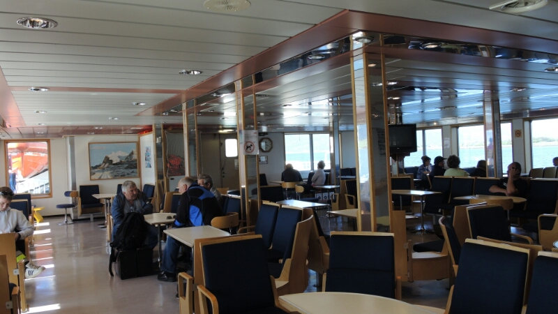 An Bord hat es mich gleich in den Salon gezogen. Schnelles WLAN ist im Preis von 39,– NOK (rd. 4,– €) inbegriffen. Mein Fahrrad hat wie immer eine Freipassage.