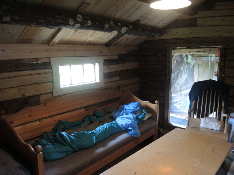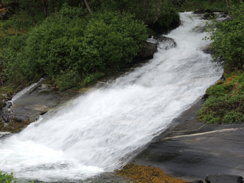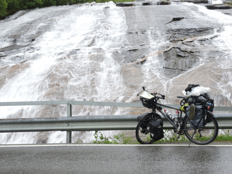 Regen ohne Unterlass und keine Besserung in Sicht, so meine Wetter- App heute Vormittag. So lag ich im  Zelt und dachte nach. Ruhetag bei diesen nicht optimalen Bedingungen oder wie geplant weiter? Ein Anruf bestätigte mir, dass ich sogar ein Dach über dem Kopf für kleines Geld bekommen könnte. 200 NOK statt hier für den Zeltplatz 180 NOK. Also auf geht’s: Alles im Regen zusammengepackt und kurz vor Mittag bin ich dann losgekommen.
