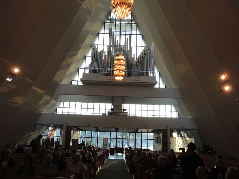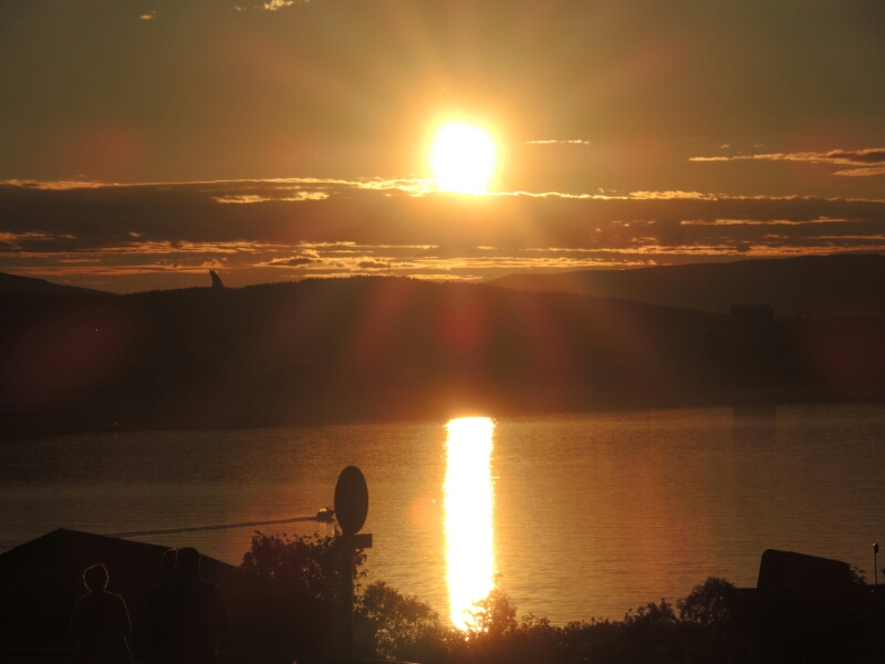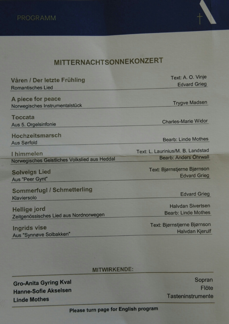 Seit Tagen hatte ich auf die Mitternachtssonne gewartet, stets war sie wolkenverhangen oder von hohen Bergen die Sicht verstellt. Ich wurde schon ungeduldig. In Kombination mit diesem Konzert und der Atmosphäre des Kirchenraums hat sie dann nach 3.919 Fahrradkilometern ihre volle Wirkung auf mich entfacht.