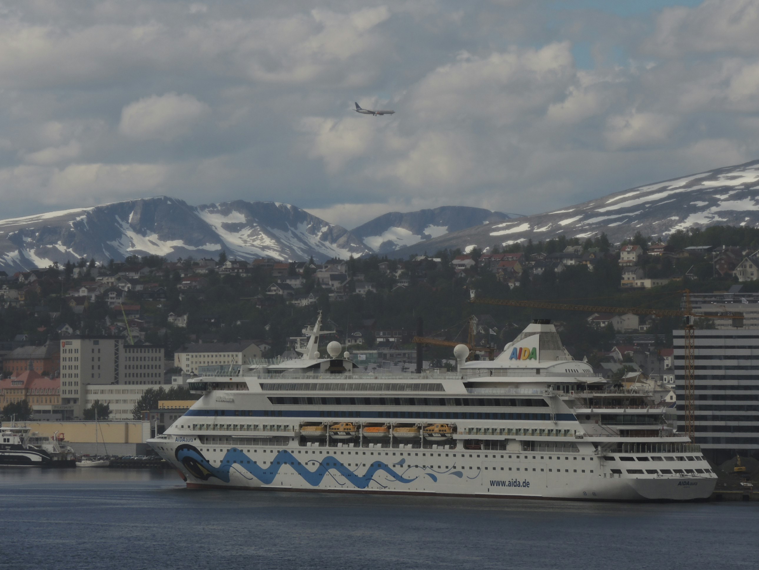 Heute lag die AIDAaura im Hafen. Darüber ein Flugzeug im Landeanflug. Es gibt viele bequeme Möglichkeiten hierher zu kommen. Es lohnt sich wirklich.