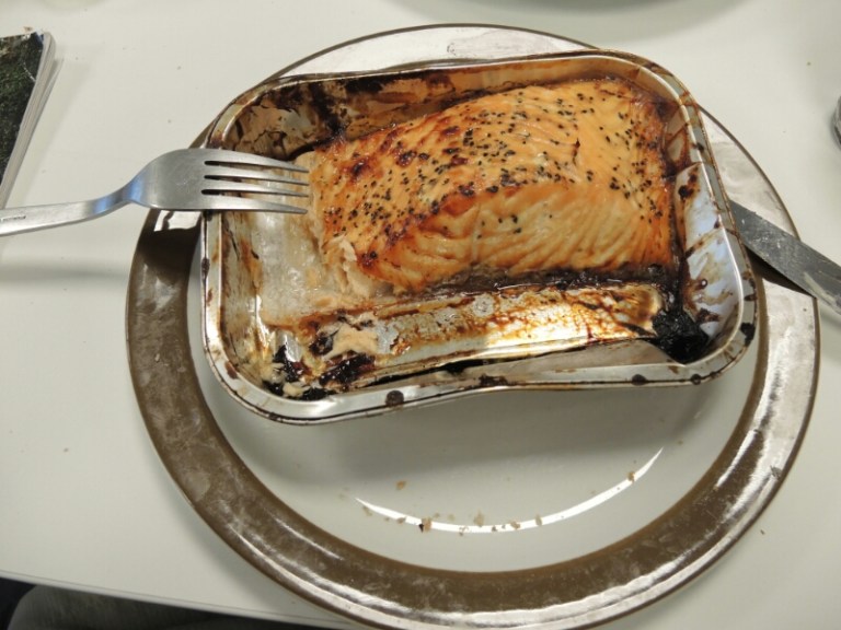 Gestern Abend gab es noch einmal leckeren frischen Lachs. Ein schnelles Essen, 20 Minuten bei 180° im Backofen. Hatte ich mir an der Fischtheke im nahen Supermarkt vorbereiten lassen und hat nur 4,– € gekostet.