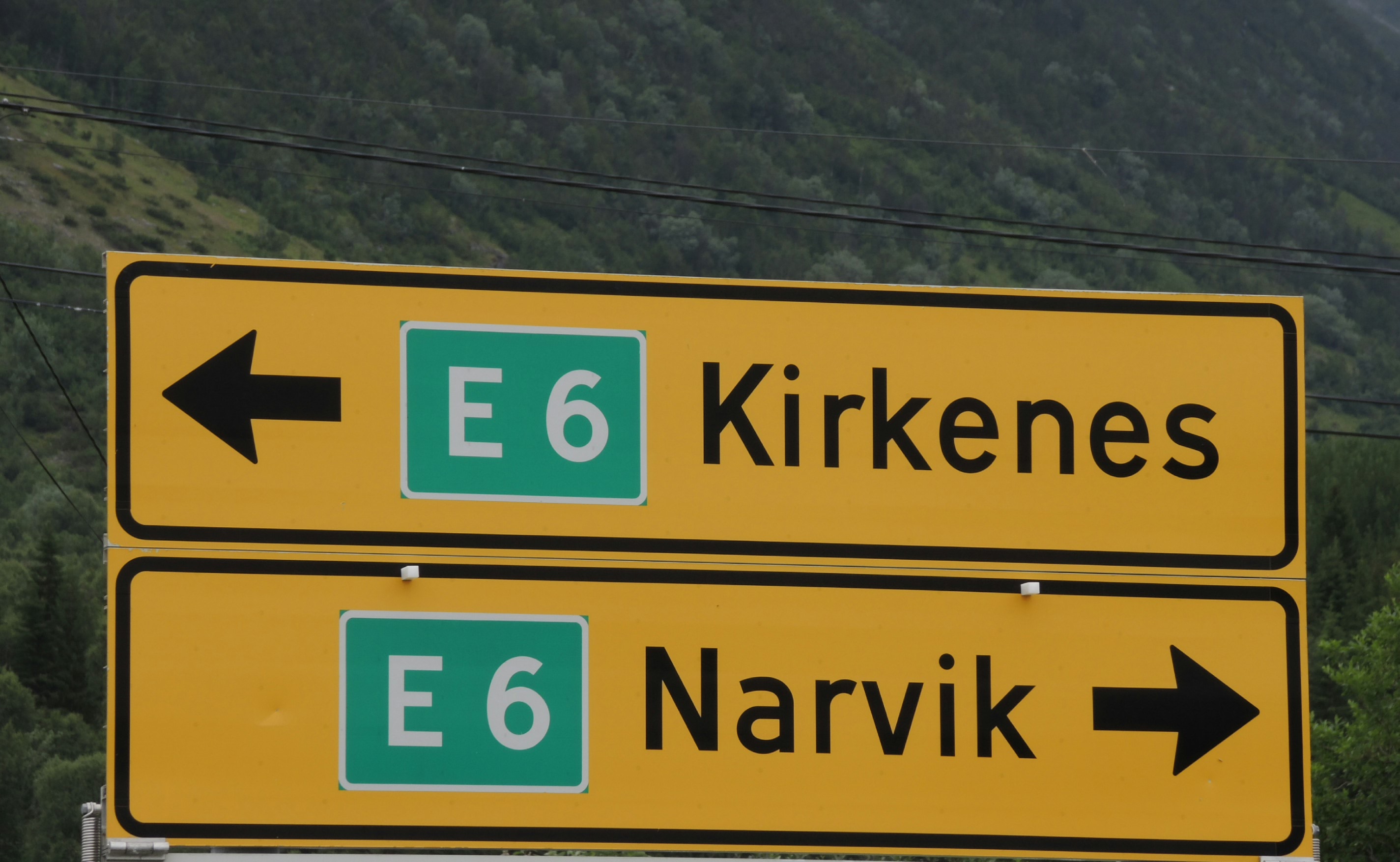 Auch die Verkehrszeichen erinnern mich, dass ich schon sehr weit hoch im Norden bin. Aus der Heimat hatte mich auch schon ein Hinweis erreicht, ich solle das Abbiegen nach Süden nicht vergessen.