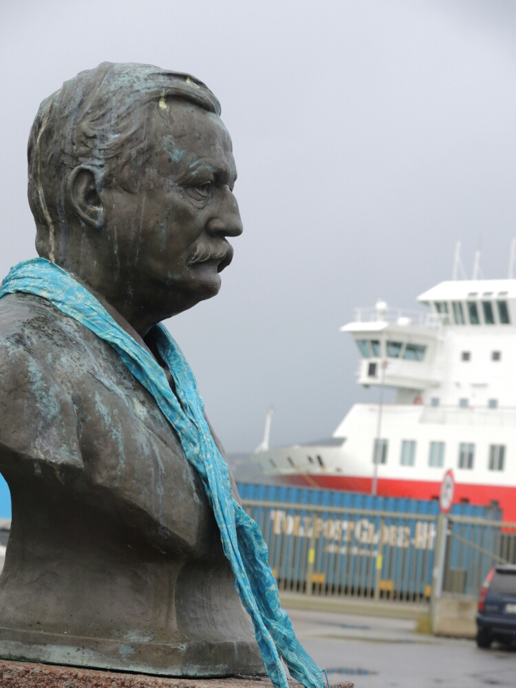 Die Büste des hochverehrten Richard With (1846 – 1930) in Stokmarknes.Er hatte den Mut und die Durchsetzungskraft, im hohen Norden einen Schiffslinienverkehr einzurichten und hat dadurch die wirtschaftliche Entwicklung der ganzen Region entscheidend verbessert und gesichert. Bis heute!