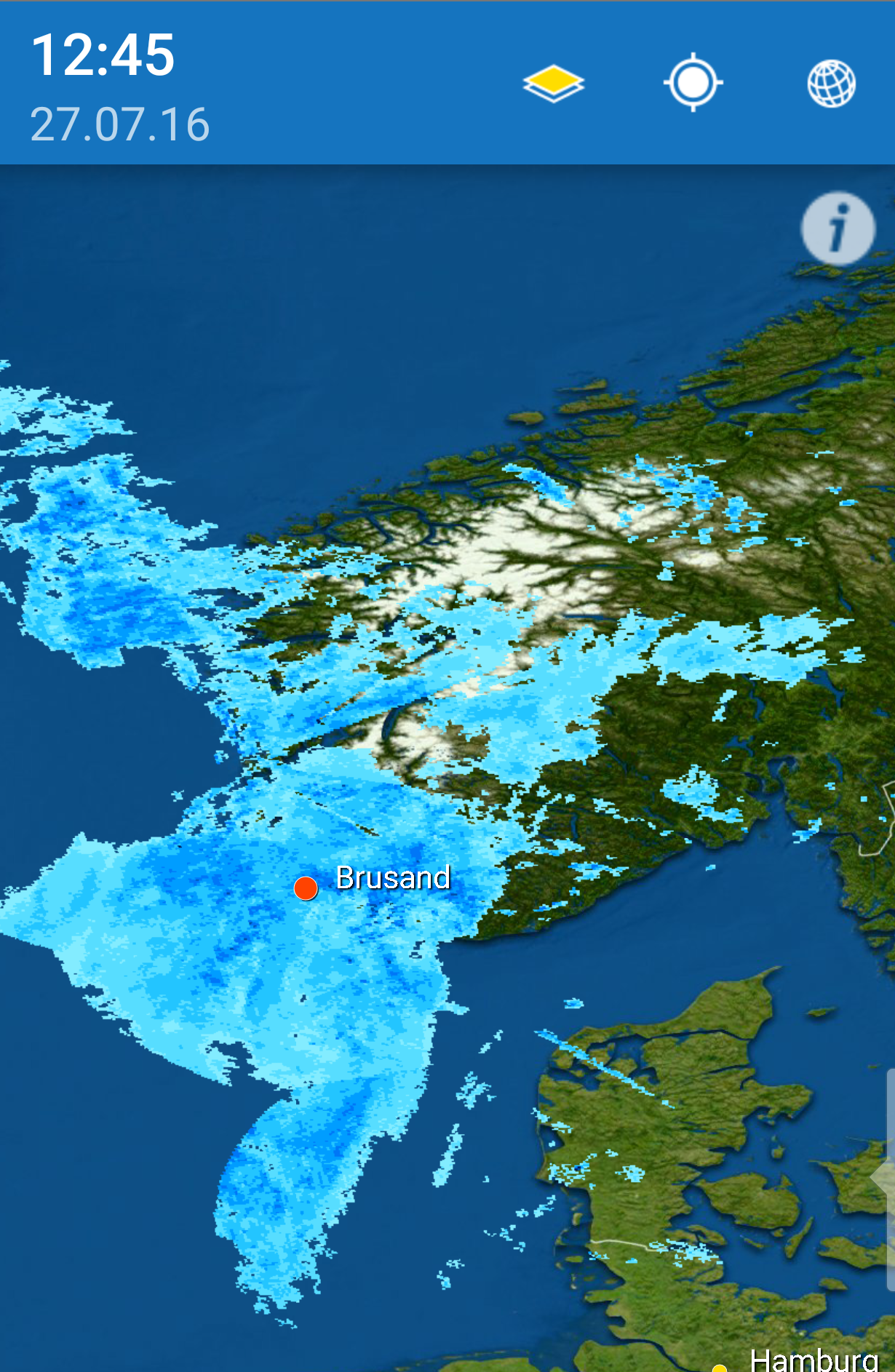 NO Brusand. 0 km, ergiebiger Regen, Wind bis 50 km/h