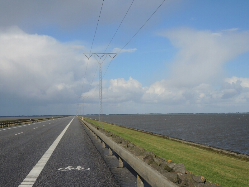 Auf dem 10 km langen Damm zur dänischen Insel Rømø war ich dem heftigen Seitenwind schutzlos ausgeliefert.