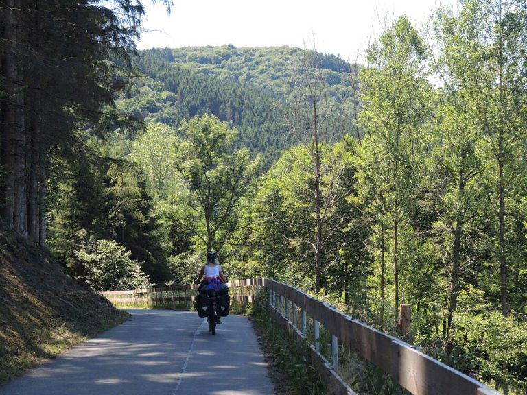 Die Hälfte der Strecke bis Ettelbrück ging es durch überwiegend einsame Landschaften. Reizvoll entlang der kleinen Gebirgsflüsschen Clerve und Sauer.