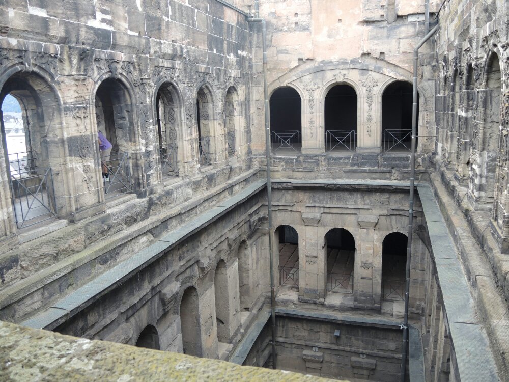 Ein Blick ins Innere. Wurde im Mittelalter in eine Kirche integriert und ist dadurch erhalten geblieben. Erst die Franzosen unter Napoleon haben alles wieder freistellen lassen.