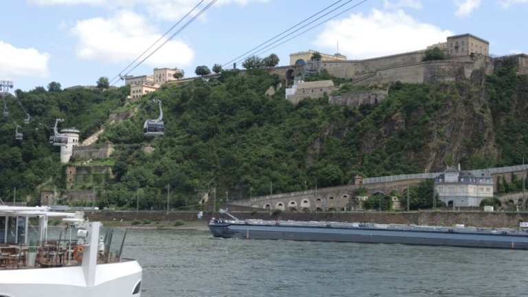 Am ‚Deutschen Eck‘ bei Koblenz unter dem wachsamen Auge der Festung Ehrenbreitenstein mündet die Mosel in den Rhein.