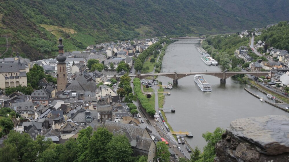 Über Cochem thront die Reichsburg. Vor 1.000 Jahren erbaut, im 17. Jahrhundert zerstört und Mitte des 19. Jahrhundert von dem Berliner Unternehmer Louis Ravene als Sommersitz wieder hergerichtet. Mit Eisenbahnschienen hat er das nötige ‚Kleingeld dafür‘ erwirtschaftet. Heute ein touristischer Magnet.