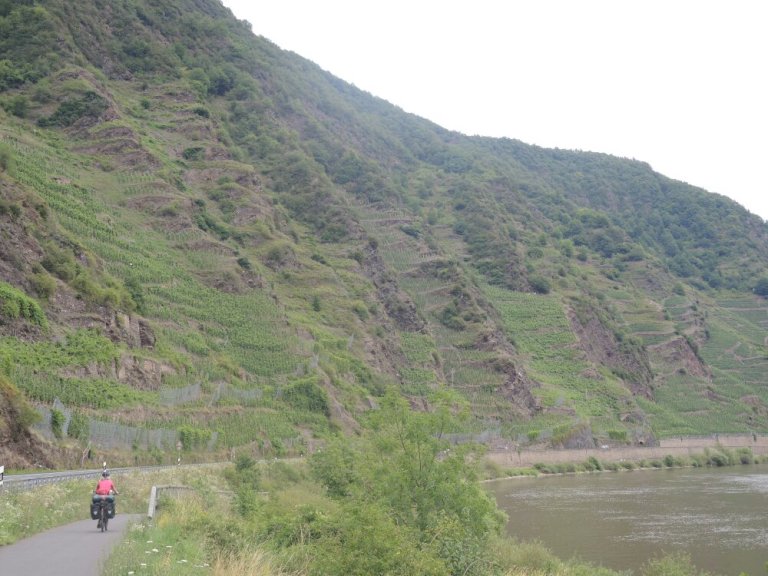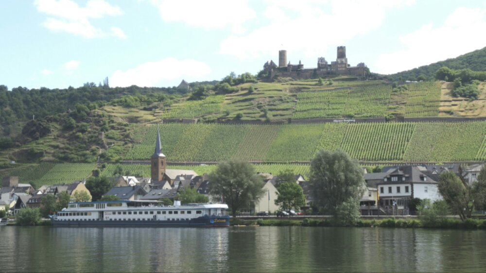 … zwischen steilen Bergen. Am Bremmer Calmont befindet sich mit 378 m Höhe und 65 Grad Steigung die steilste Weinberglage Europas. Ganz oben gibt es sogar einen Klettersteig wie in den Alpen.