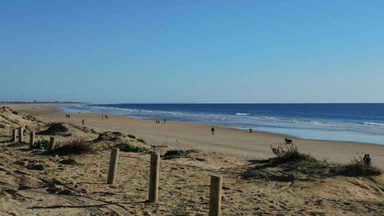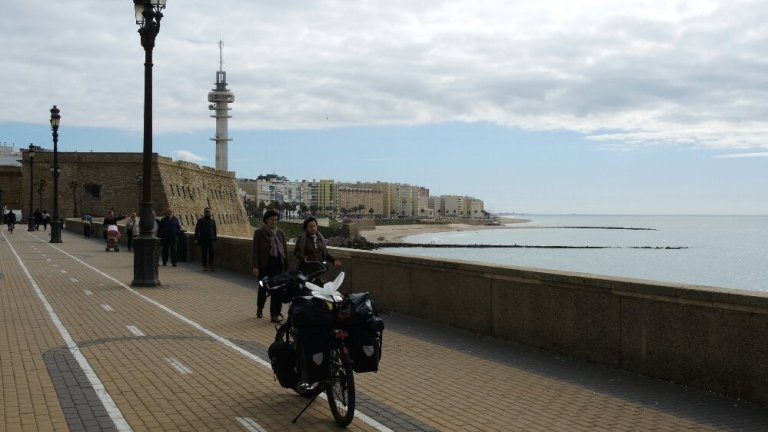Die Fahrradstrecke war mal wieder sehr abwechslungsreich. Aus Cádiz raus konnte ich 17 km Autovia nicht vermeiden. Vorsichtshalber hatte ich mich bei einem Motorradpolizisten erkundigt. Er kein Englisch oder Deutsch, ich kein Spanisch. Trotzdem haben wir es klären können…