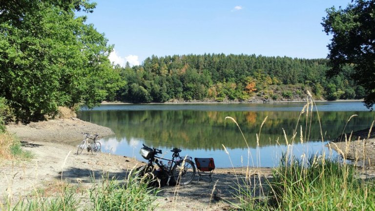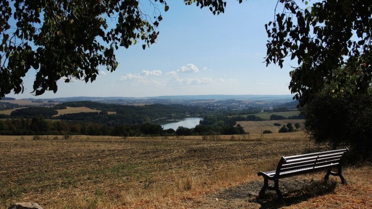Aus dem Tal strahlt verlockend die Pirk – Talsperre hinauf.
