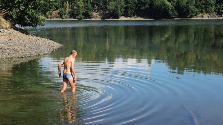 Und ab geht’s in das aufgestaute, erfrischende Nass der Elster.