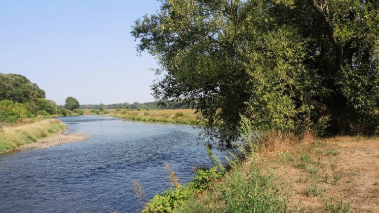 Friedlich fließt die Mulde bei Grimma. Bestimmt habt ihr noch die Bilder der zerstörerischen Fluten von 2013 im Gedächtnis.
