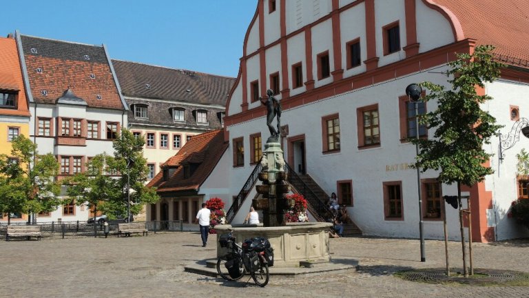 Am Marktplatz in Grimma verlasse ich den Mulderadweg. Gestern Abend hatte ich noch spontan umgeplant.