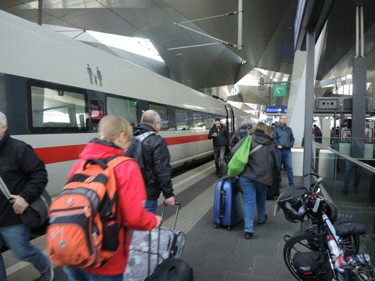 Mein Fahrrad ist das erste Mal im ICE gereist. In Göttingen sind wir mit ’nur‘ 5 Minuten Verspätung abgefahren.