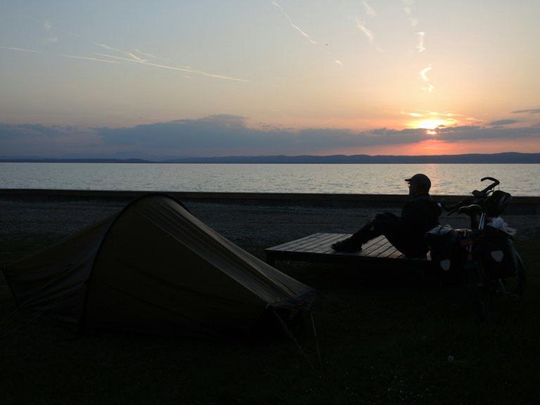 Blick über den Neusiedler See. Von der anderen Seite bin ich gekommen. Der See ist so flach, da hätte ich es auch zu Fuß probieren können😲