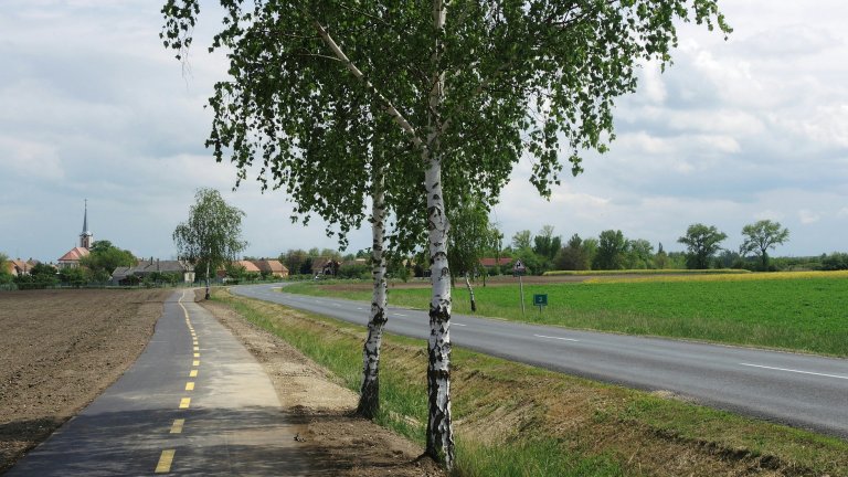 Vermutlich eine Erstbefahrung, ein funkelnagelneuer Radweg in Ungarn.