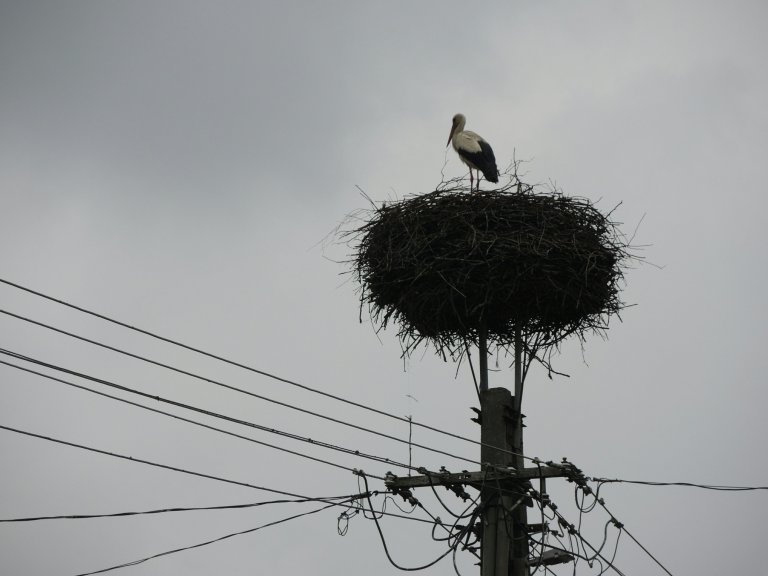 Ein Storch schaut dem Treiben gelassen zu: Wann kommt mein Partner aus dem warmen Süden an?