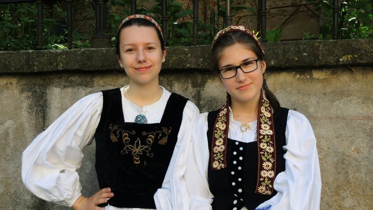 Alexia und Täo warten auf Ihren Auftritt beim Umzug der Siebenbürger Sachsen.
