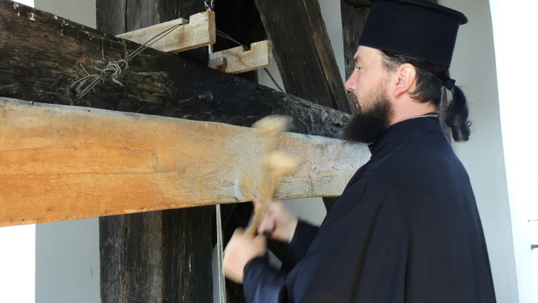Zunächst werden die Gläubigen mit weit hinaus klingenden Holztönen gerufen (im heimatlichen Harz haben sich früher Köhler ähnlich mit der „Hillebille“ verständigt).