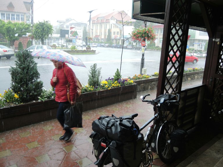 Die Wahl der Kleidung war bereits beim Start eindeutig. In Targu Neamț hat es nach 15 km aber derart stark geschüttet, dass kein Weiterkommen war.
