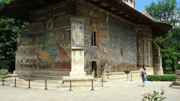 Ein Teil der Klöster zeichnet sich durch detaillierte Wandmalereien auf den Außenmauern aus. Diese sollten dem damals des Schreibens und Lesens unkundigen Volk Szenen und Gleichnisse aus der Bibel vermitteln. Mehr auf Wikipedia