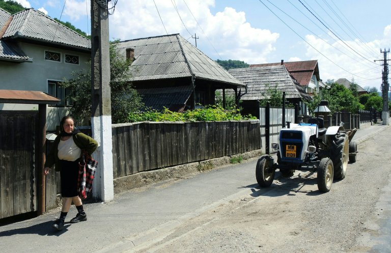 Der einzige Trecker des Tages. Hier ist die Zeit wirklich stehen geblieben. Heute waren erstmals die Pferdegespanne die Regel, nicht die Ausnahme.