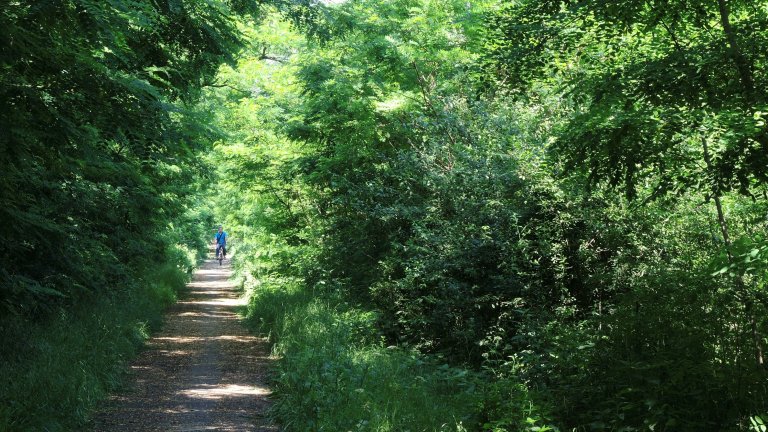 Straßenbegleitende Radwege wechseln sich mit ruhigen Nebenstraßen ab. Überwiegend allerdings in der sengenden Sonne.