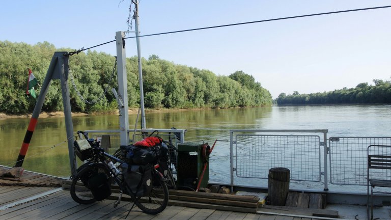 Schon 34° bei der Überfahrt, und alle Mücken der Region stürzen sich auf mich, da ich ihnen jetzt nicht mit dem Fahrrad entfliehen kann.