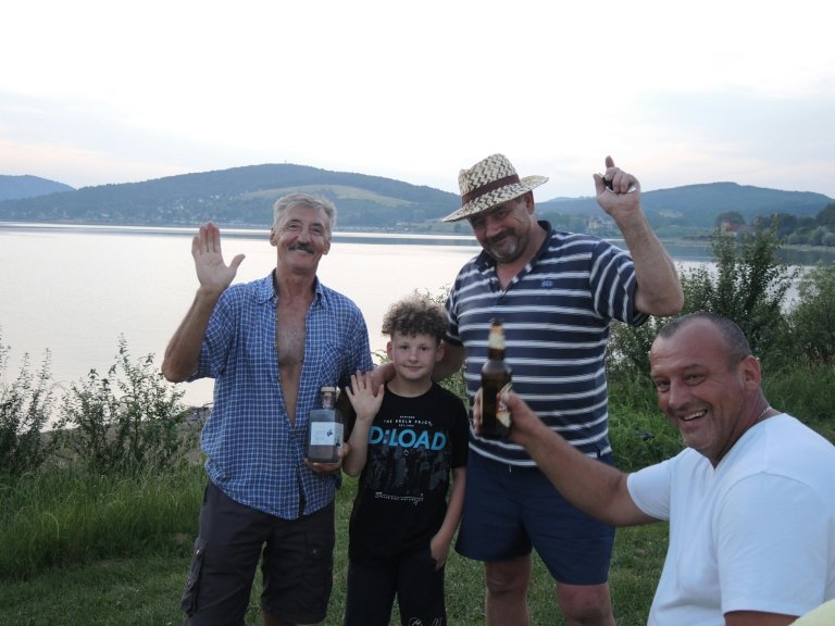 Bei meiner Rückkehr hat mich Josef (links) mit Freunden und Enkelsohn mit Pflaumenschnaps und Bier abgefangen. Bei der Hitze…. man will ja nicht unhöflich sein😆. Später noch…
