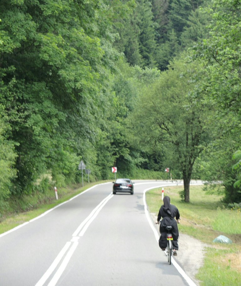 Dieser Dame war ich zu langsam. Mit einem Affenzahn überholt mich eine Nonne. Es gibt heute für die Katholiken noch viel zu tun.