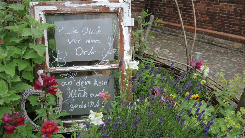 Der Name soll entstanden sein durch die Ähnlichkeit mit den Gewändern der Pfälzer Einwanderer, Pfalzrock genannt. Der Drehkranz ist ganz unten unter dem Gewand. Vor 300 Jahren entwickelt.Das älteste Backsteinbauwerk Norddeutschlands, Kloster Jericho.Und wer schon immer mal wissen wollte, wie ein Zahnschnittfries gemauert wird, erfährt dies im angegliederten Backsteinmuseum.Hier finde ich endlich auch einmal unser heimisches Gartenkonzept angepriesen.Und in jedem Dorf mächtige, wehrhafte Backsteinkirchen.Am Tagesziel in Havelberg lacht die Sonne mir zu. Blauer Himmel über dem riesigen Dom.Ein ruhiges Plätzchen für die Nacht habe ich auf der Havel-Spülinsel gefunden.