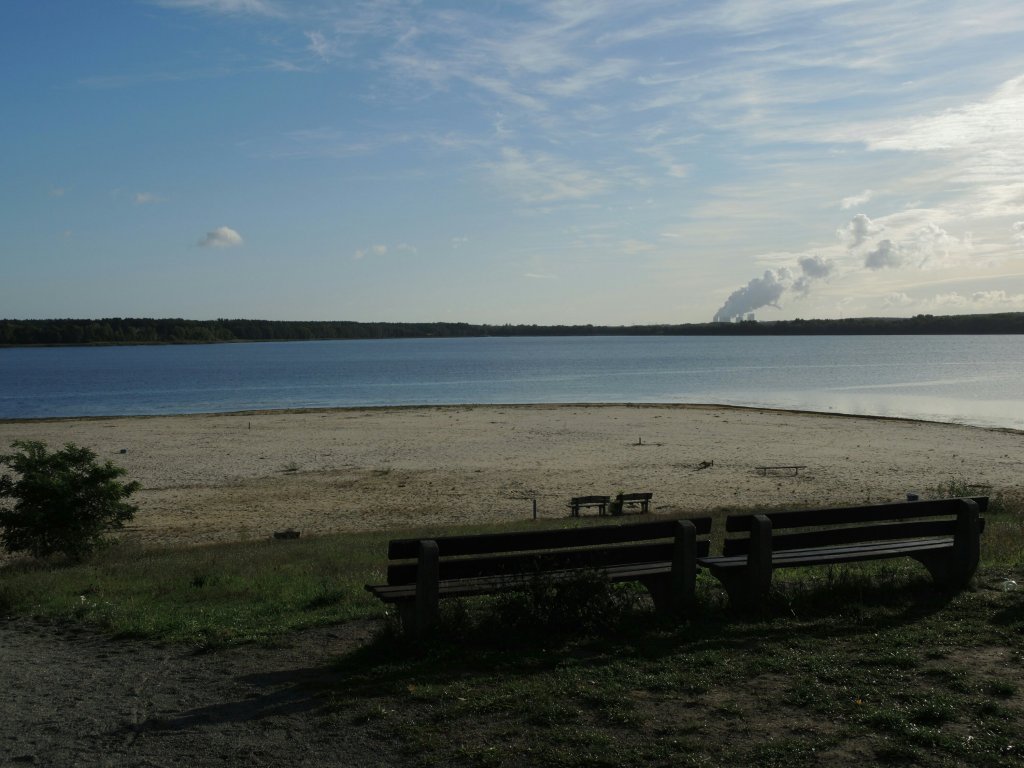 Im Bild einer der häufigen Badestrände. Dreiweiberner See.