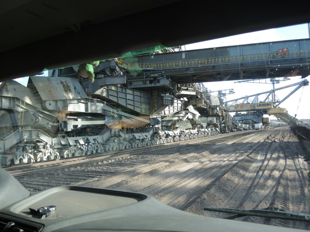 Die im Einsatz befindlichen Großgeräte stammt noch aus den 80er, DDR-Ingenieuerskunst, fuktioniert bis heute, u.a. die größte, bewegliche Maschine der Welt. (Mehr dazu in ein paar Tagen, ich hoffe, dass ich sie mal besteigen kann)