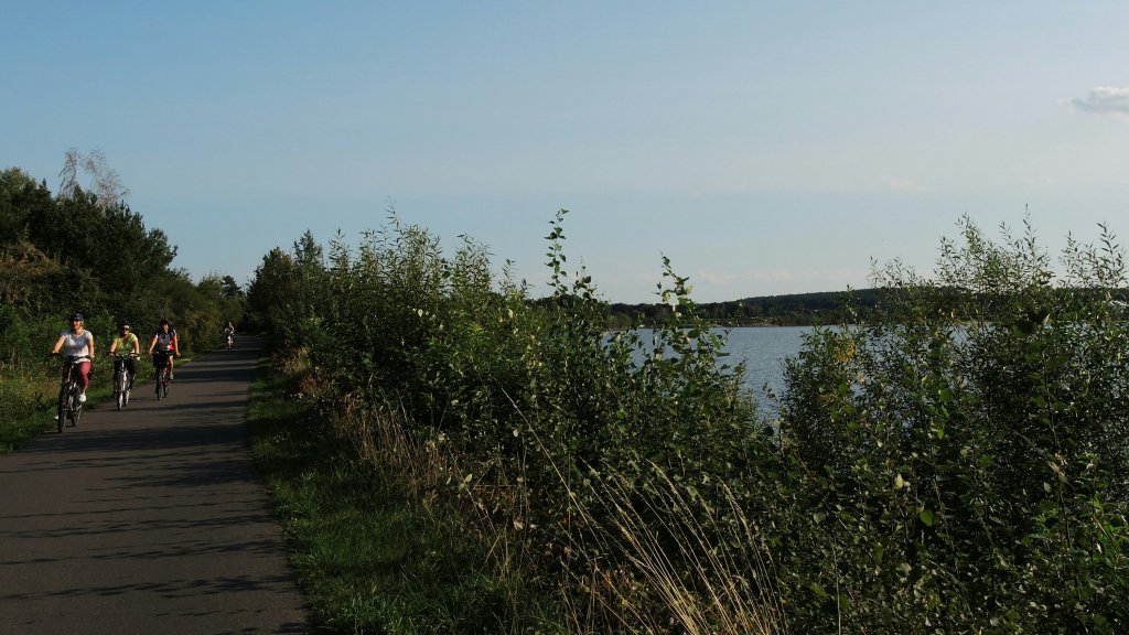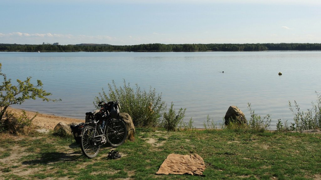 Auf gewohnt guten, autofreien Wegen bin ich am ersten Tag einmal um den See gefahren. 20 km ohne Hügel.