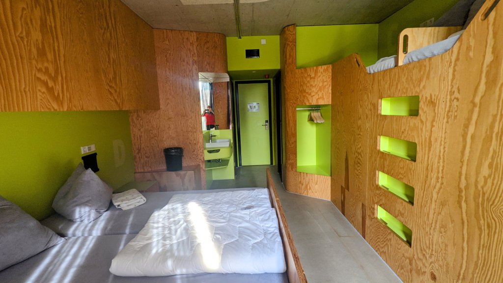 1872 erbaut. Einzigartig in Architektur und Akkustik, deswegen gibt es auch bis heute keine Klimaanlage, um den herausragenden Klang nicht zu schwächen. Zählt zu den größten Opernbühnen der Welt.Richard Wagner. 1813 bis 1883Gedenken an den Rassenwahnsinn, dem die Familie Wagner über mehrere Generationen verfallen war.UNESCO-Welterbe, das Markgräfliche Opernhaus im Zentrum der Stadt.Noch 1 km und ich bin am Ziel.Die erst vier Jahre alte JuHe.Designer waren am Werk. Hier geht es zu meinem Zimmern in einem der drei Flügel.Nur mit sehr viel Glück habe ich einen Schlafplatz bekommen. 46,90€ HP.