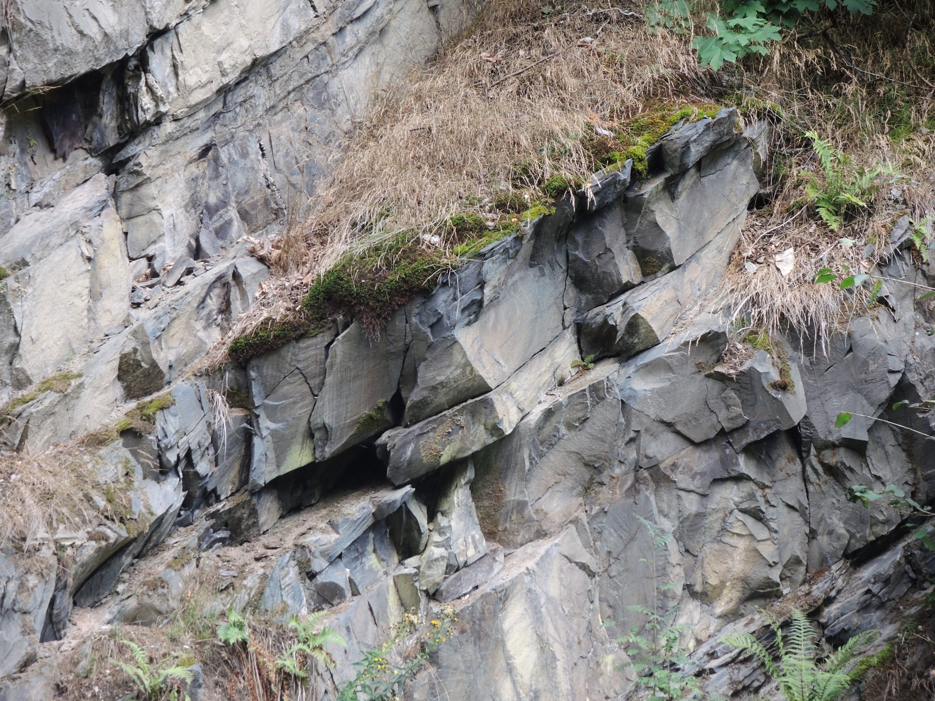 Das Thüringische Schiefergebirge in Nahaufnahme: Ein ehemaliger Grauwacke-Schiefer-Steinbruch kurz vor…