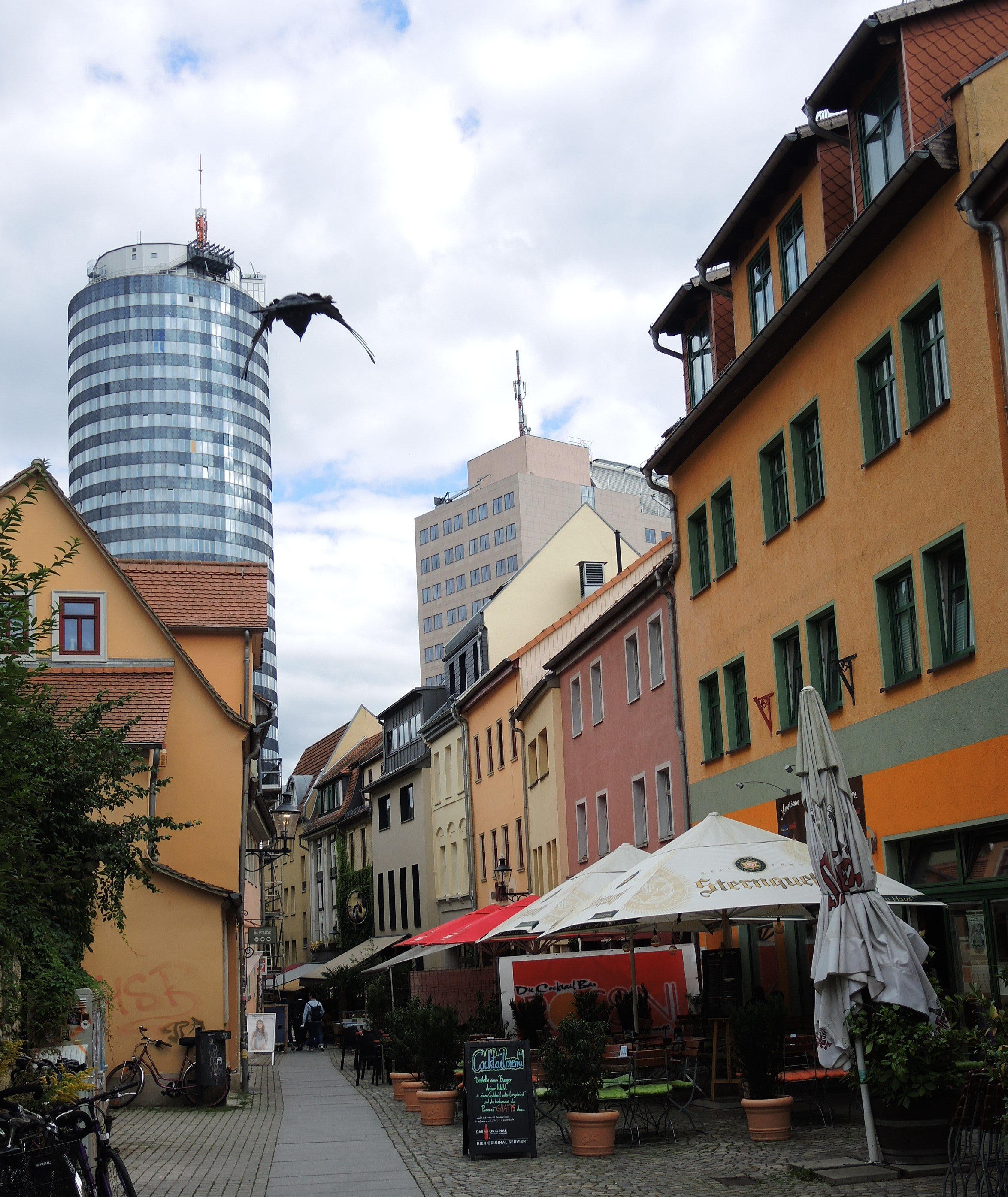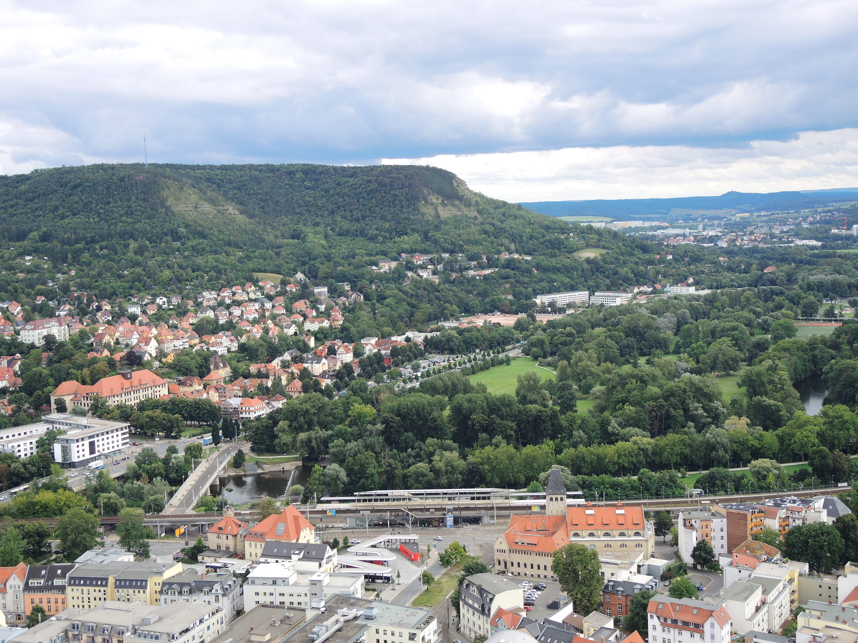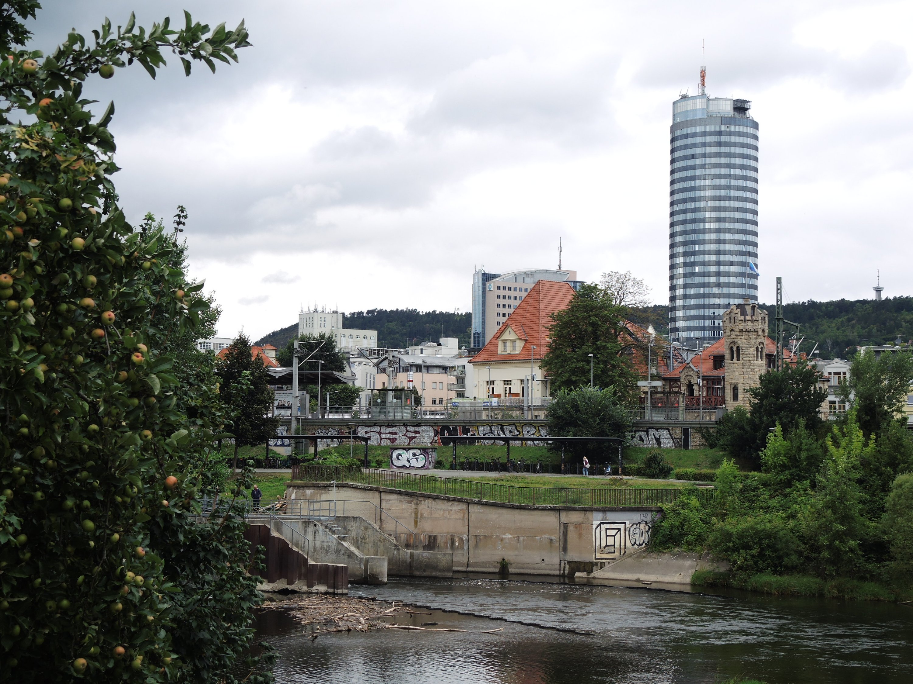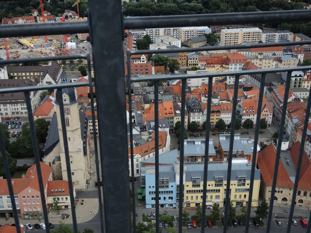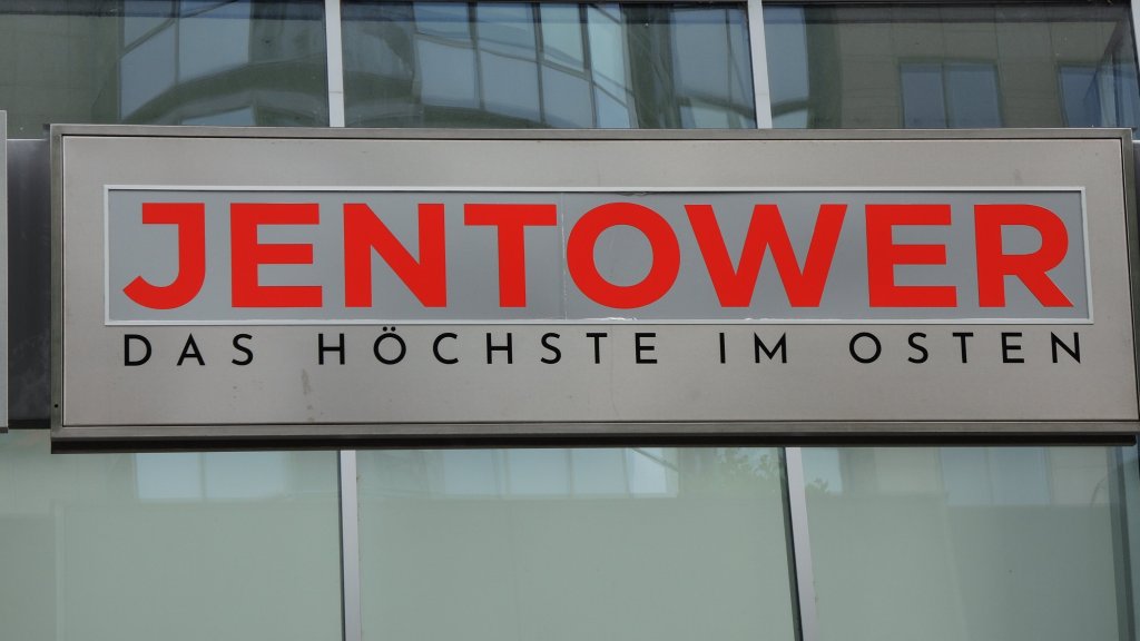 Der JenTower dominiert das Stadtbild.