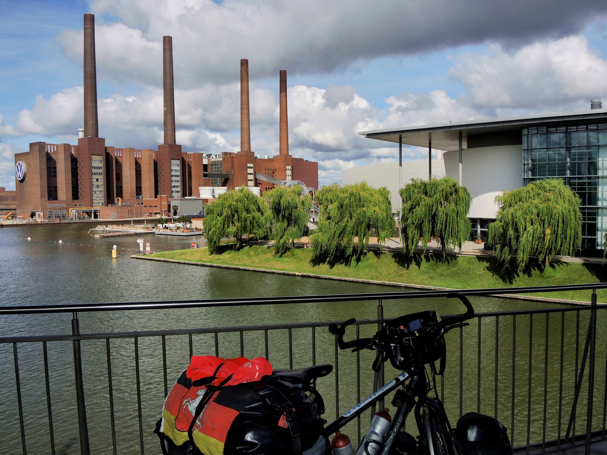 Mein Vermieterin hatte verpennt. Ich habe deshalb 10 km weiter gefrühstückt.Zum Start auch mal die Aller ganz nah. Ansonsten führt der Weg entfernt von diesem Bächlein.Wie gestern. In den sachsen-anhaltinischen Dörfern plakatiert die AfD, sonst niemand. Von den anderen Parteien aufgegeben?Das ändert sich erst in Niedersachsen.Der MittellandkanalDas Fußballstadion des VfL WolfsburgIch bin dann mal vorgefahren. Die Autostadt in Wolfsburg.Gigantisch, wie aufwendig Automobilität präsentiert wird. Geld scheint keine Rolle gespielt zu haben.