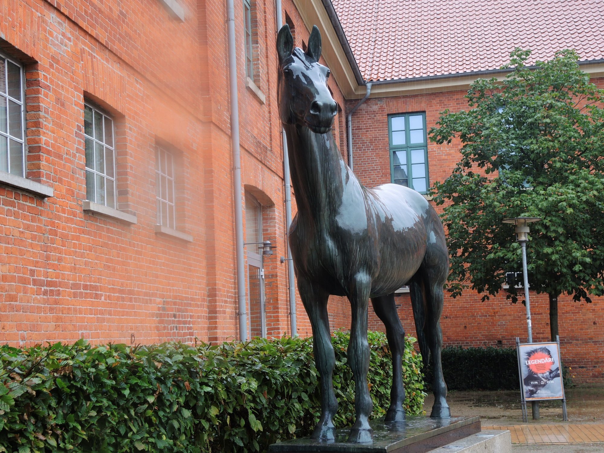 Der berühmte Tempelhüter vor dem Deutschen Pferdemuseum