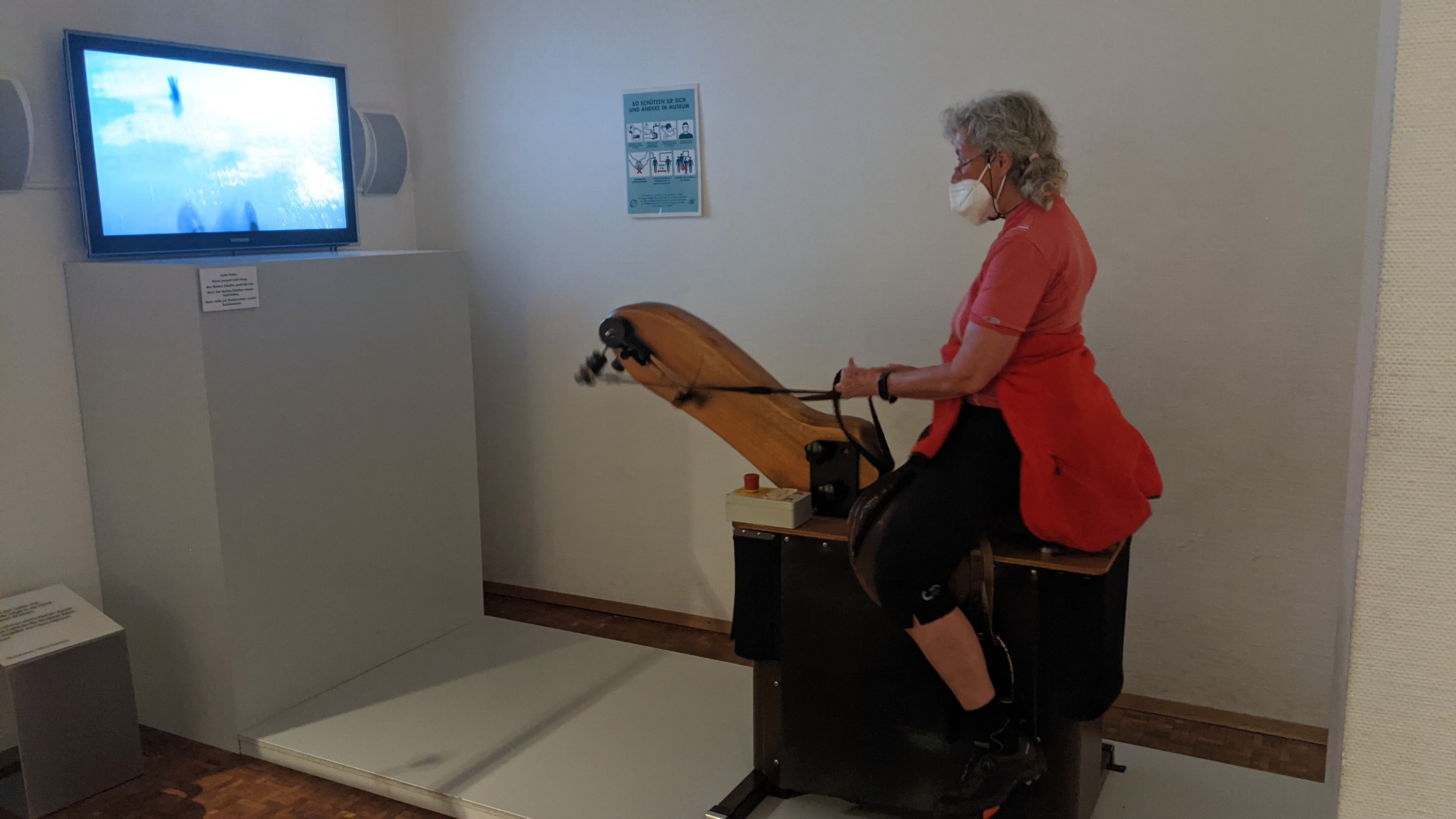 Die Halla-Vitrine mit einem Video des legendären Olympiaritts.