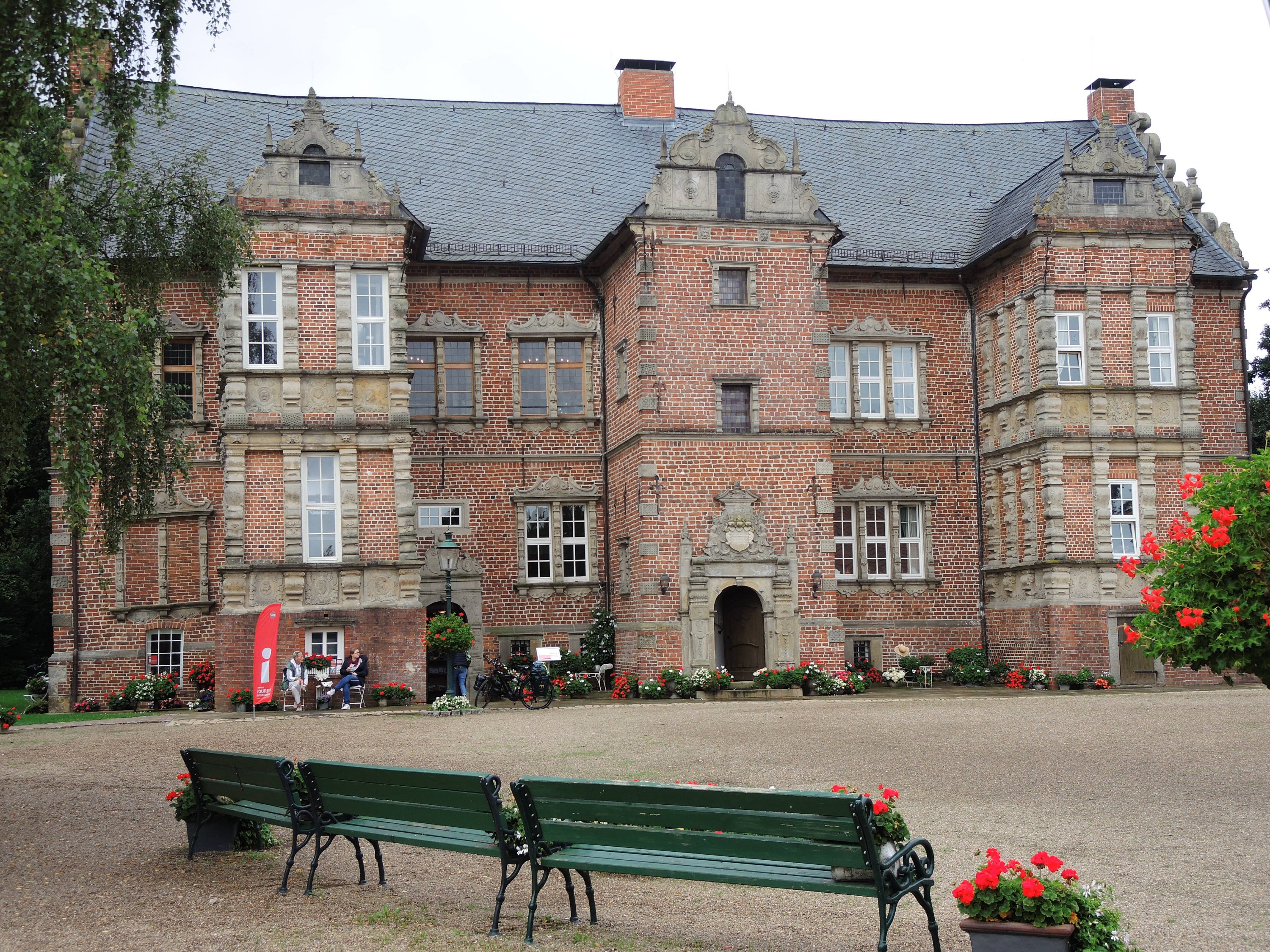 Schleuse Langwedel. Der Blick nach unten…… zeigt, warum wir noch keine Binnenschiffe auf der Weser gesehen haben: Wartung, dauert für jede Schleuse zwei Wochen. Das bedeutet für die Schiffer einen Umweg von 200 km.Das Schloss Erbhof in Thedinghausen ließ der Erzbischof Johann Friedrich von Bremen für seine Geliebte, die junge Witwe des erzbischöflichen Drosten von Hermeling, Gertrud von Hermeling-Heimbruch, erbauen.
