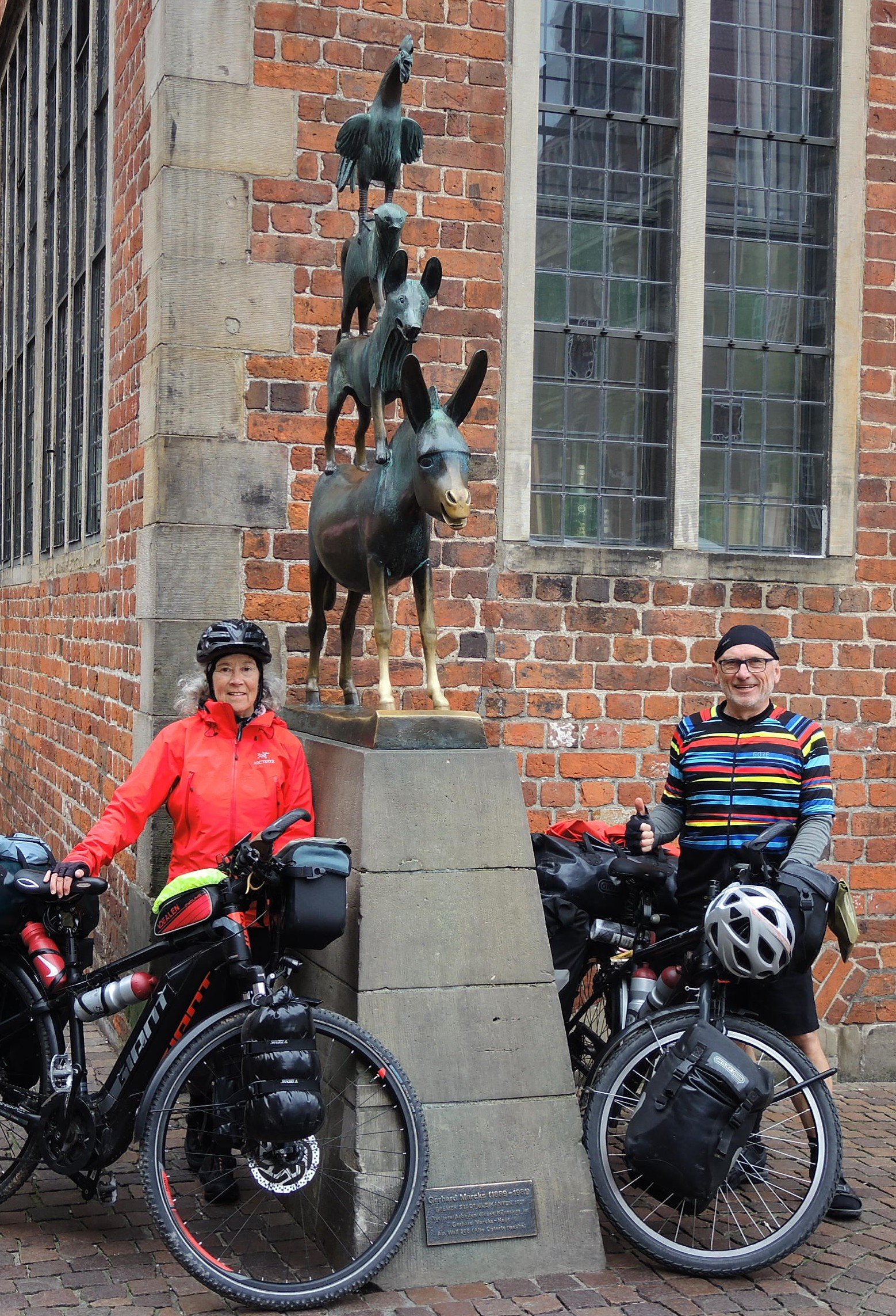 Das ist mal ein Name.… und gilt als Perle der Weserrenaissance.Anlässlich des 400-jährigen Schlossjubiläums in 2020 wurde das Wappen des Erzbischofs über dem Hauptportal wieder angebracht.Seit 2005 wird im 11 ha großen Schlossgarten ein Arboretum mit 450 Arten an Laubbäumen entwickelt.Auf dem Weserdamm, eine landschaftlich schöne Einfahrt bis fast….… zum Roland in Bremen…… sowie dem unverwechselbaren Wahrzeichen, das prächtige Rathaus im Stil der Weserrenaissance (beides UNESCO-Welterbe).Hart umkämpft, ein Fotoplatz mit den Bremer Stadtmusikanten.Thorsten sammelt für den Johanniter-Kältebus Bremen, der seit 6 Jahren Obdachlose mit warmen Mahlzeiten und Kleidung versorgt.100 m freier Weg…… trotzdem gesperrt und keine ausgeschilderte Umleitung.Wir haben über diesen Damm den kürzesten Weg auf die andere Seite gefunden. 10 km Umweg ohne nachvollziehbare Notwendigkeit. Typisch Norden!In Lemwerder gibt es die bemerkenswerte „Weser-Side-Gallery“. Eine der längsten Freiluft-Galerien des Landes erstreckt sich entlang einer 1000 Meter langen Spundwand.Aussichtspunkt Weitblick …… flussabwärts Vegesack…flussaufwärts.Die berühmte …… Traditionswerft Lürssen baut heute Luxusyachten und Spezialschiffe.Schon unter Einfluss der Gezeiten. Diese Segelboote sind trocken gefallen.