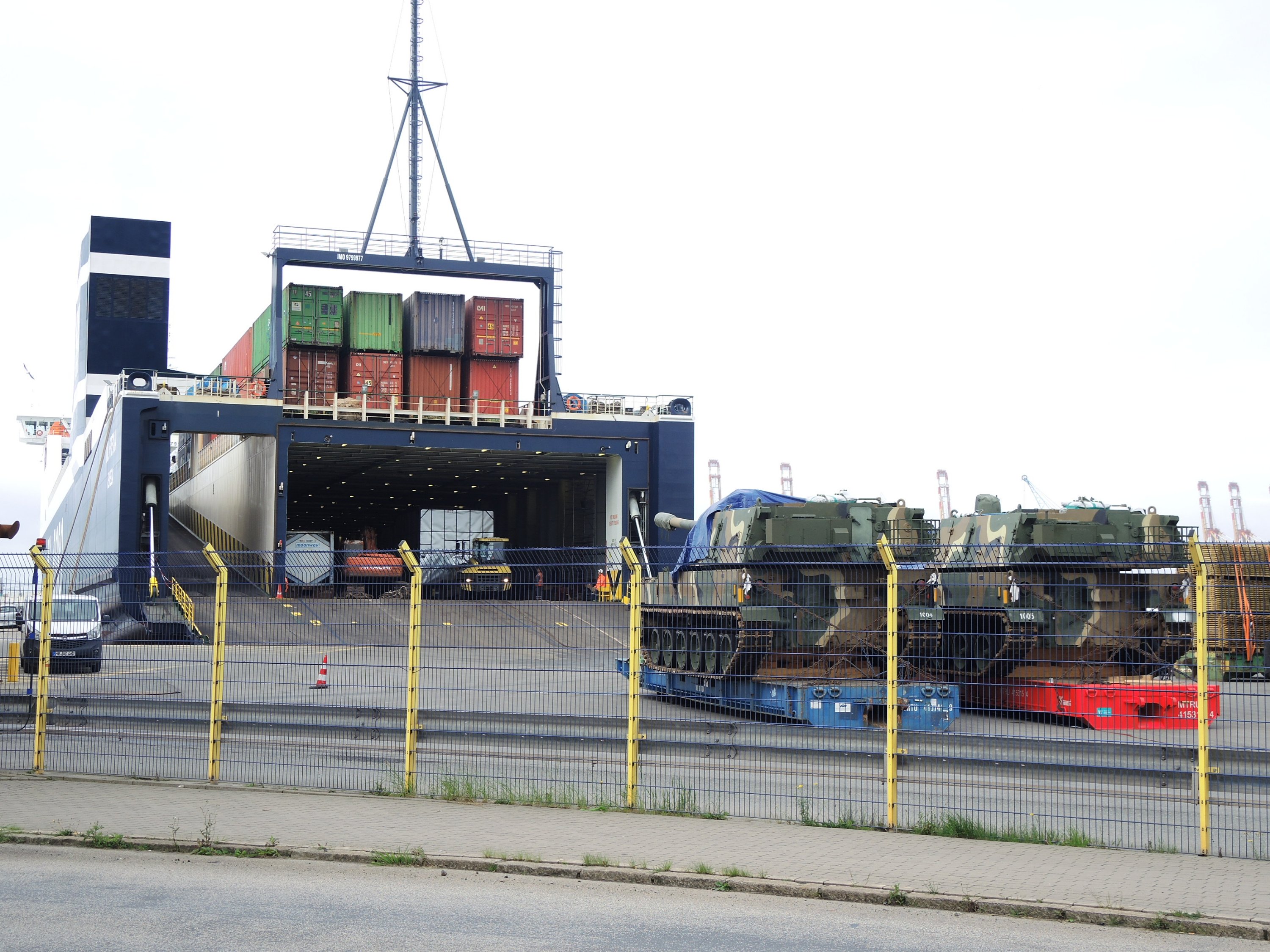 An anderer Stelle werden Panzer verschifft.