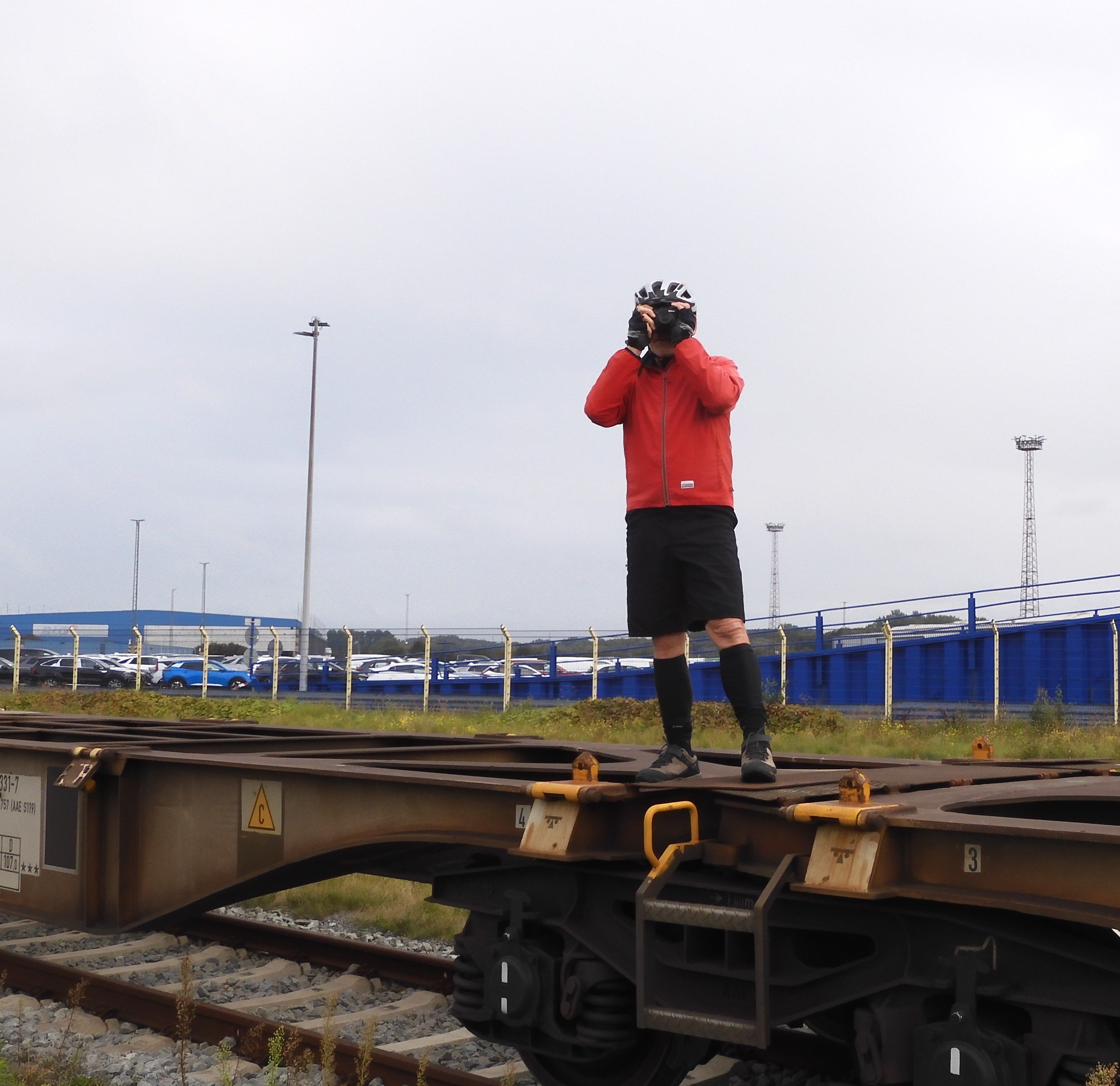 Immer auf der Suche nach einer guten Fotoposition. Der Eisenbahnwaggon hat die richtige Höhe.