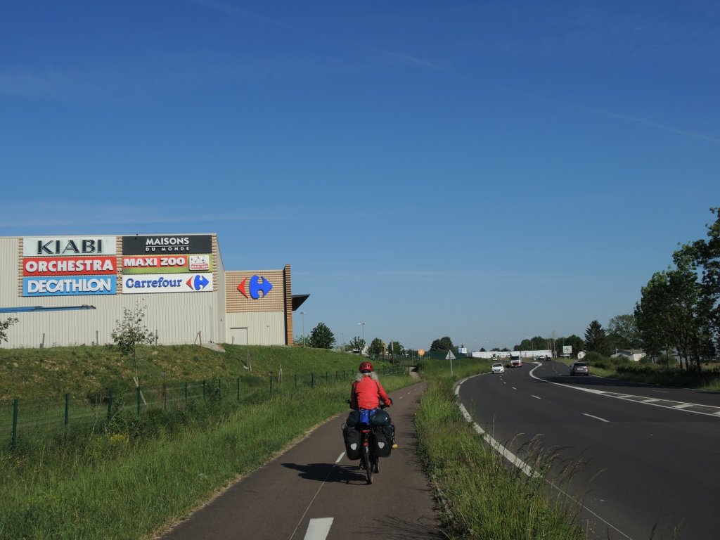 Start in Nevers entlang der Einkaufszentren vor den Toren der Stadt.