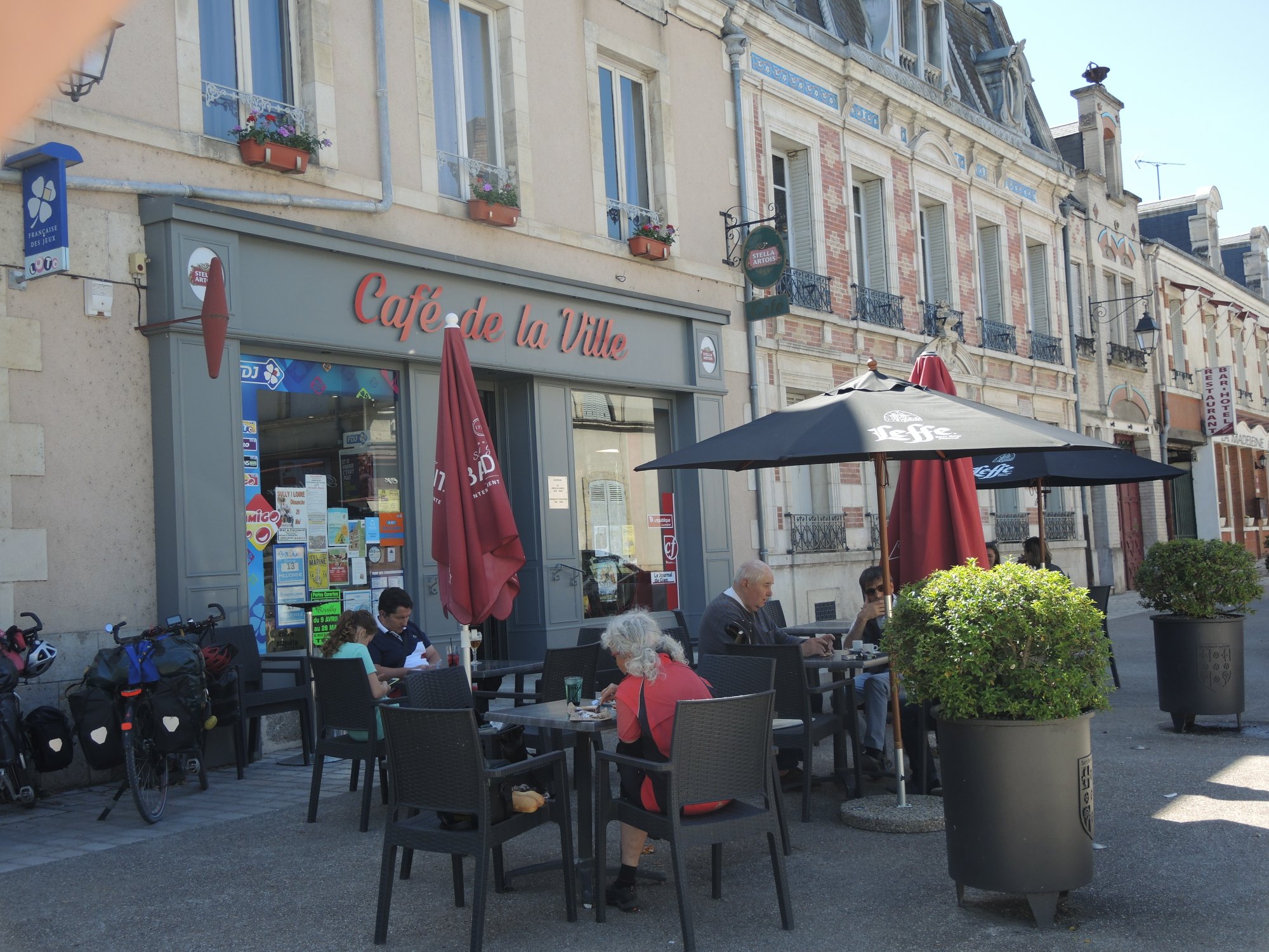 Kein Tag ohne Café-Besuch, heut mal…… mit dem Inhaber, der den Sirup für mein Getränk in der Hand hält. Stets, wie auch hier, überaus freundlich. Heute sogar in Englisch.Noch ’ne tolle Brücke. Über diese darf alles rüber, was rollt.Schwäne auf der Loire.Eigentlich sollte sie erst morgen im Blog erscheinen. Den ganzen Tag über war sie aber schon präsent, die französische Nationalheilige Jeanne d’Arc. Hier im Zentrum unseres Etappenziels Jargeau.